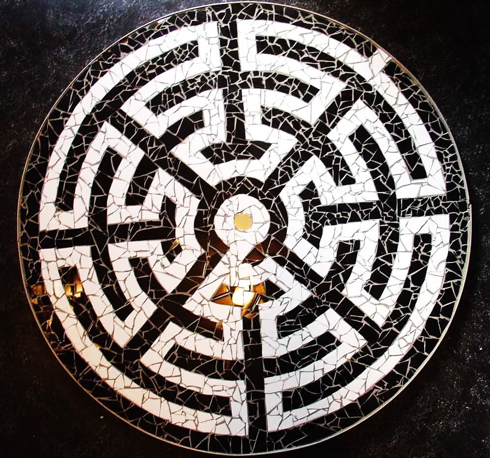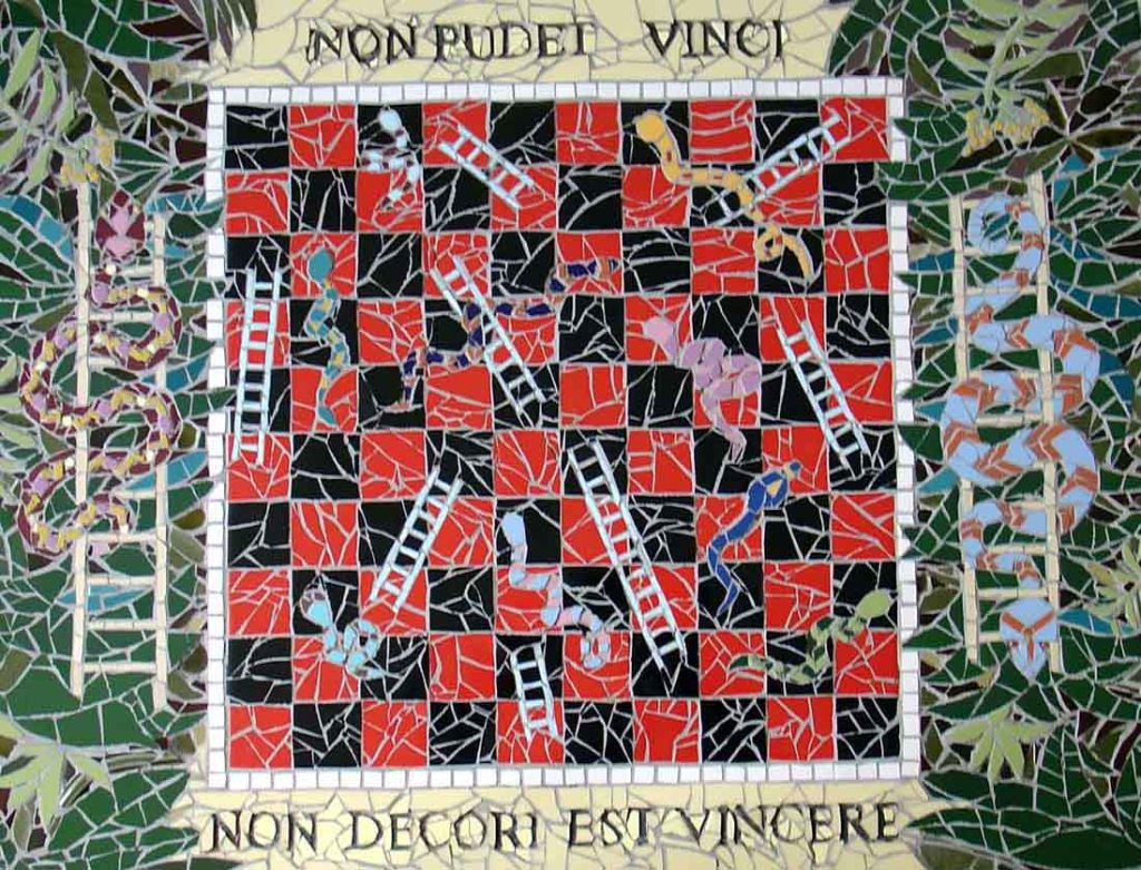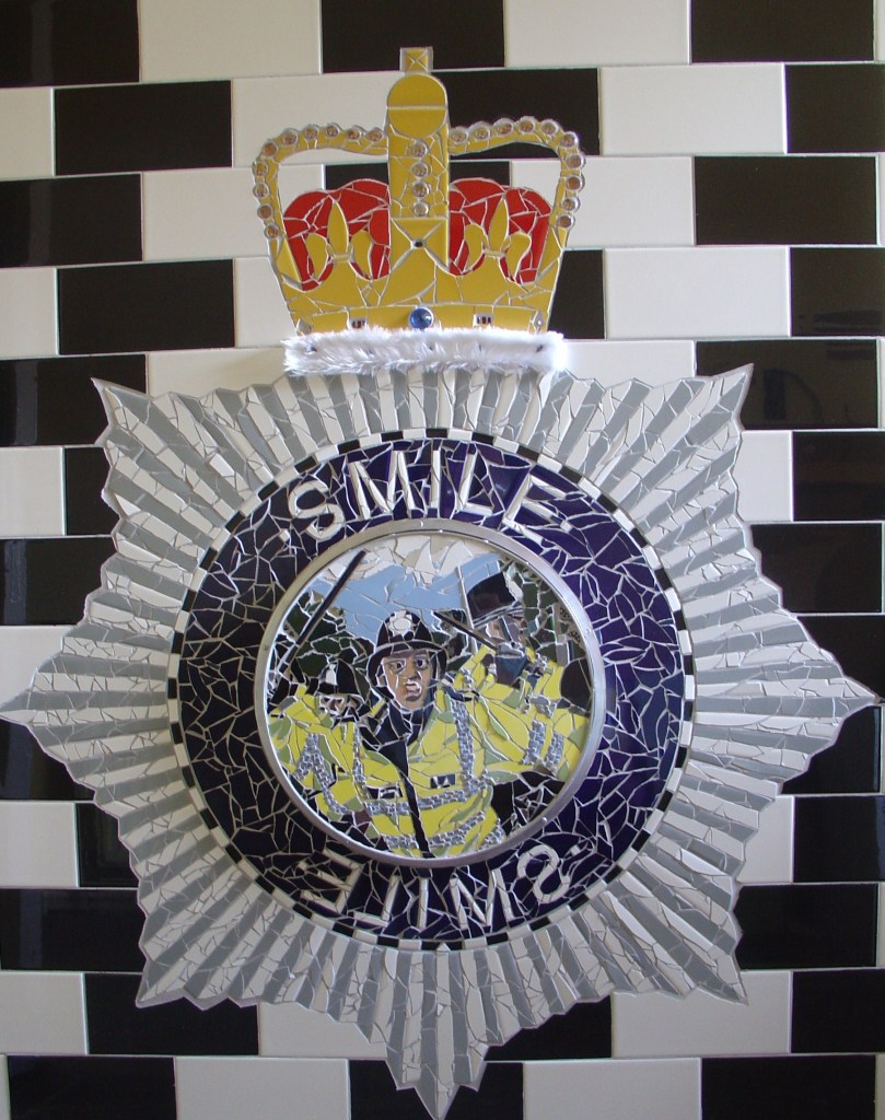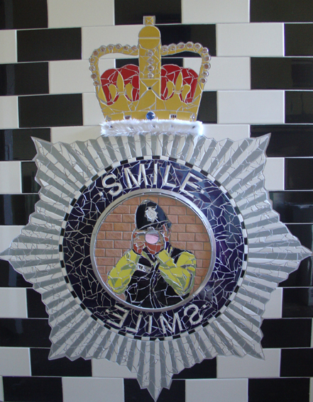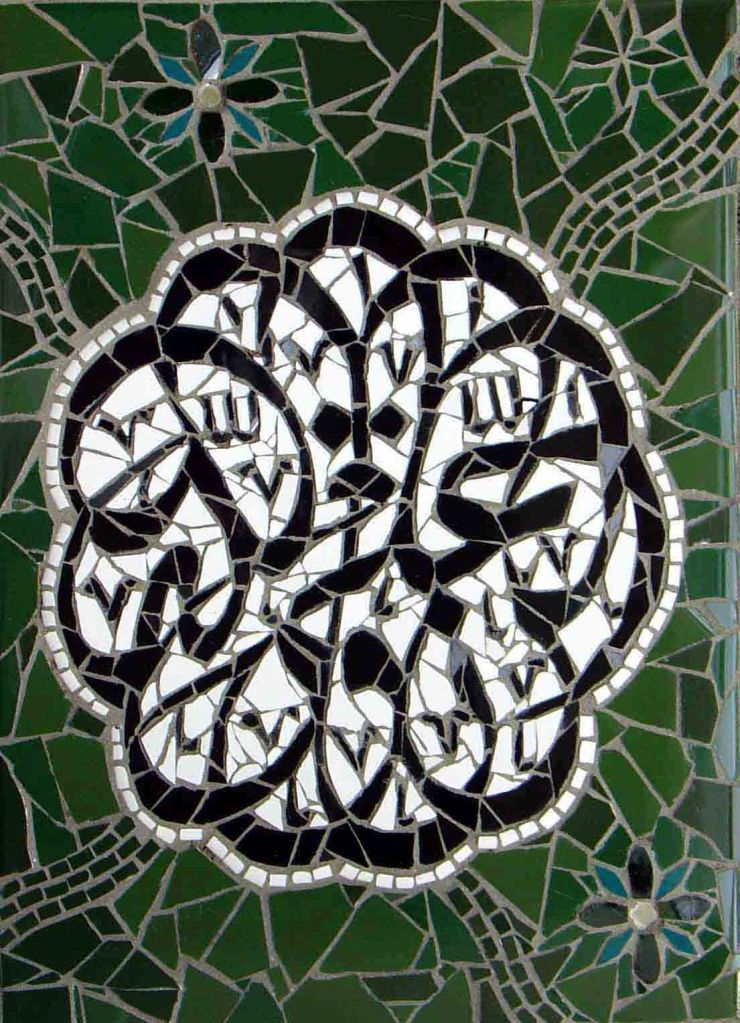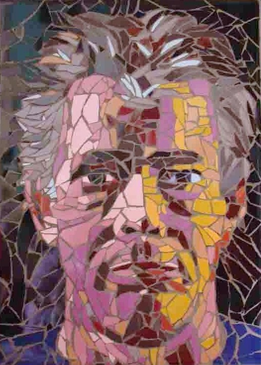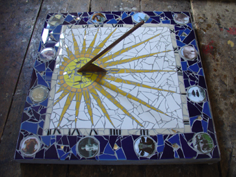 Mosaics 128 x 101 cm. 2008 Table top, 1 metre, 2004. self portrait, 38 x 28 cm, 2010. 80 x 62 cm, 2006. 38 x 28 cm each, 2003. Sundial, 44 x 44 cm, 2010. Tray, 44 x 28 cm, 2011.